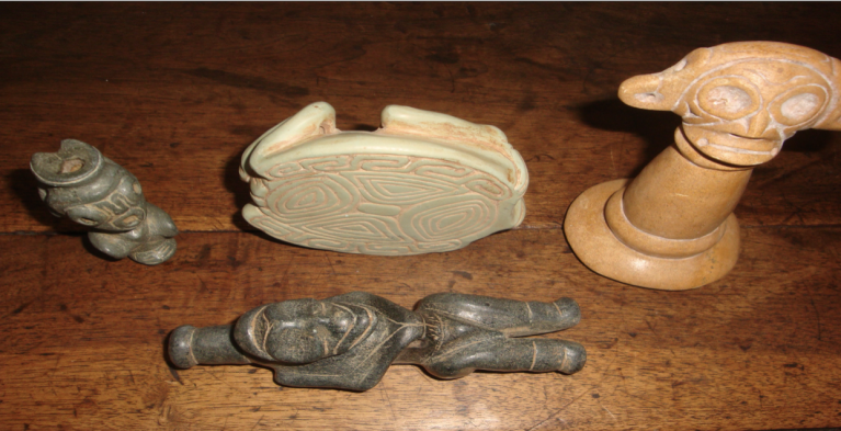 Au quotidien, les Tainos utilisaient des haches de forme pétaloïdes, des mortiers et pilons pour préparer le manioc, le tabac, des creusets ...