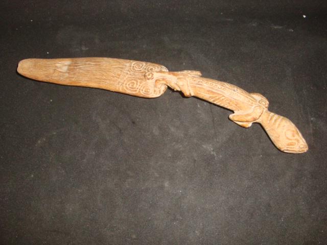 La spatule vomitive peut-être à décor anthropomorphe, zoomorphe et anthropozoomorphe bien qu'il existe simplement polie et sans décor. Réalisée dans un os ou en bois, la spatule incurvée et lisse se termine par un embout arrondi, utilisée pour provoquer des vomissements et ainsi purifier le corps du chamane avant de procéder au rituel de la cohoba et à l'inhalation d'une substance hallucinogène du même nom. Le manche est sculpté d'un animal ou d'un humain.